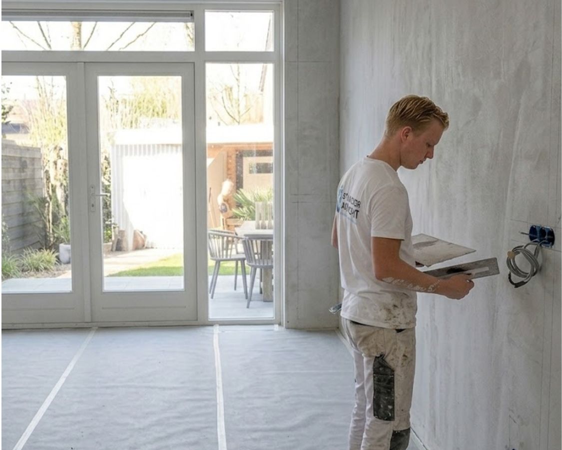 Een goede voorbereiding zorgt ervoor dat stucwerk netjes en efficiënt kan worden uitgevoerd. Wij adviseren om meubels en losse spullen zoveel mogelijk uit de ruimte te halen zodat wij vrij kunnen werken. Grote meubels kunnen eventueel in het midden van de kamer worden geplaatst en worden afgedekt om ze te beschermen. Ook is het handig om wanden vrij te maken van decoratie en kleine objecten. Stopcontacten en schakelaars blijven meestal bereikbaar zodat wij het stucwerk netjes kunnen afwerken rondom deze punten. Tijdens de voorbereiding beschermen wij vloeren en andere onderdelen van de ruimte zodat het werk schoon en veilig kan worden uitgevoerd.
